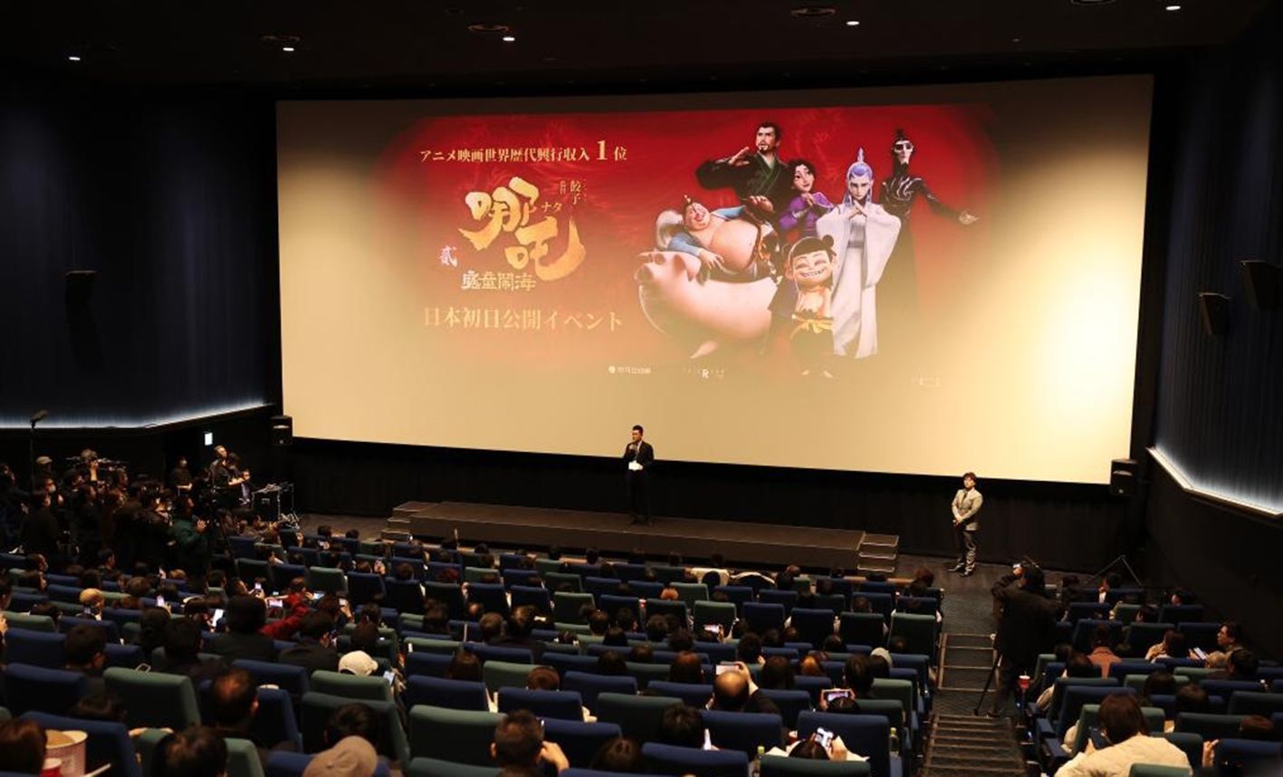 3月14日,中国动画电影《哪吒之魔童闹海》在东京举行首映式,数百名观众到场观影,现场气氛热烈。这是3月14日在东京拍摄的电影《哪吒之魔童闹海》日本首映式现场。(新华社)