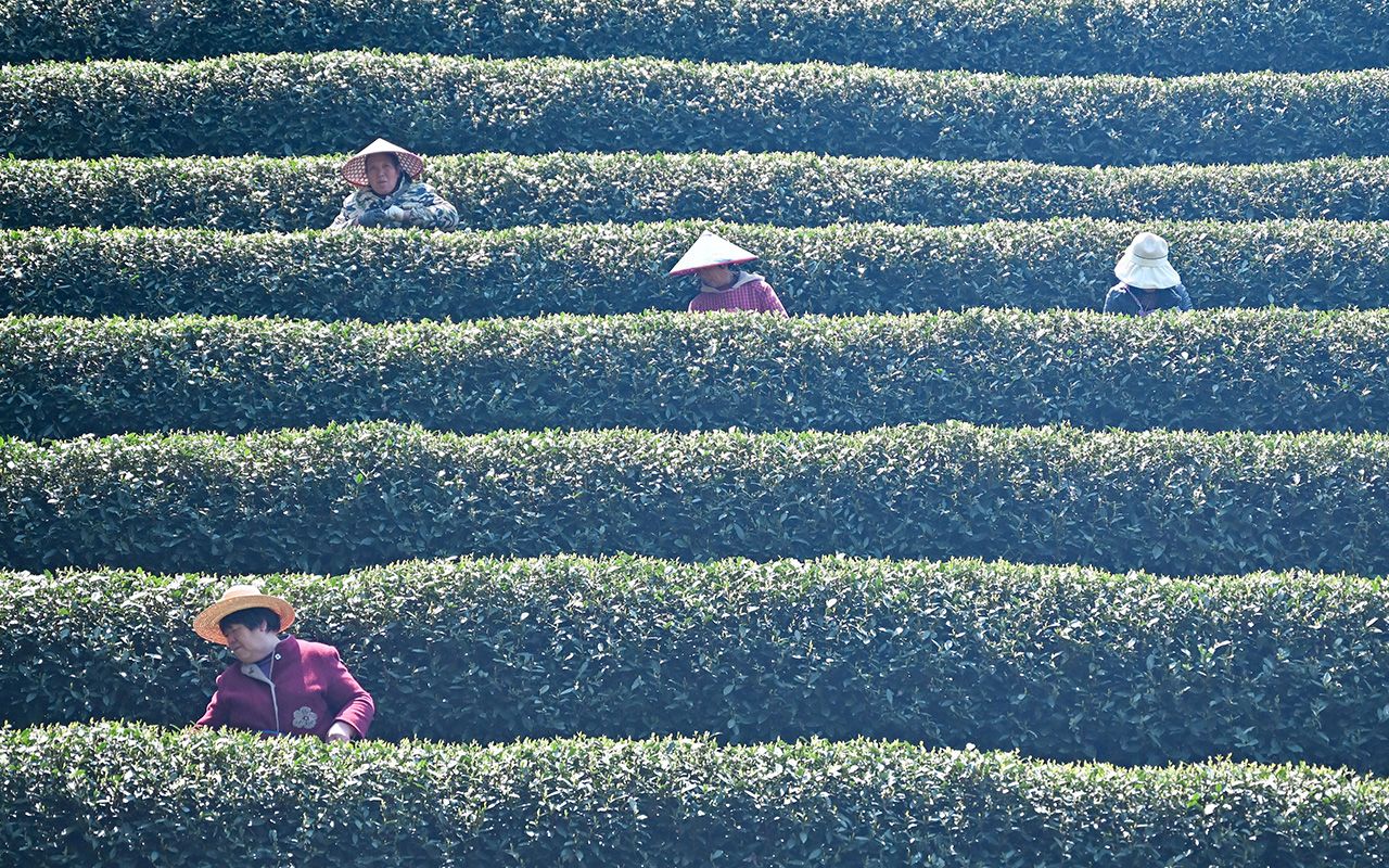 3月20日正值春分节气,浙江杭州西湖龙井茶正式开采。