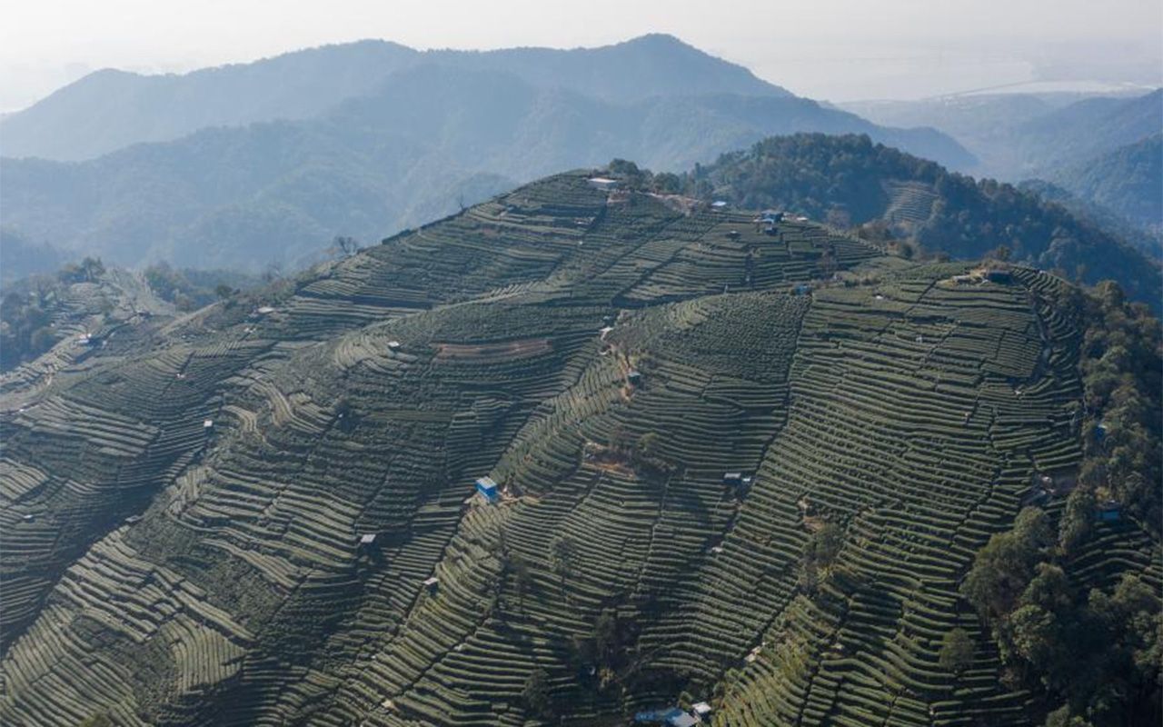 图为3月20日,浙江杭州,西湖龙井茶基地一级保护区杭州翁家山(无人机照片)。(新华社)