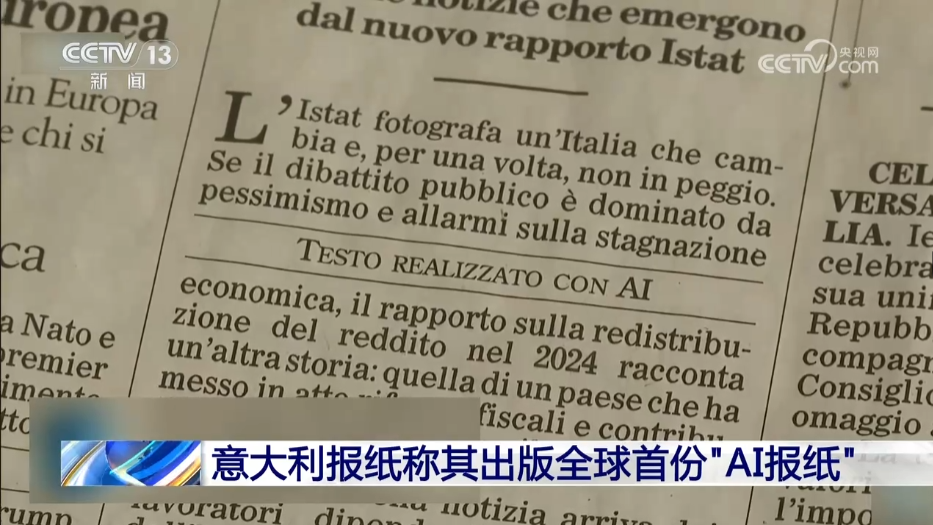 意大利全国性报纸《福利奥日报》称其出版发行了全球首份、完全由生成式人工智能技术撰写的报纸。(图/中国央视新闻视频截图)