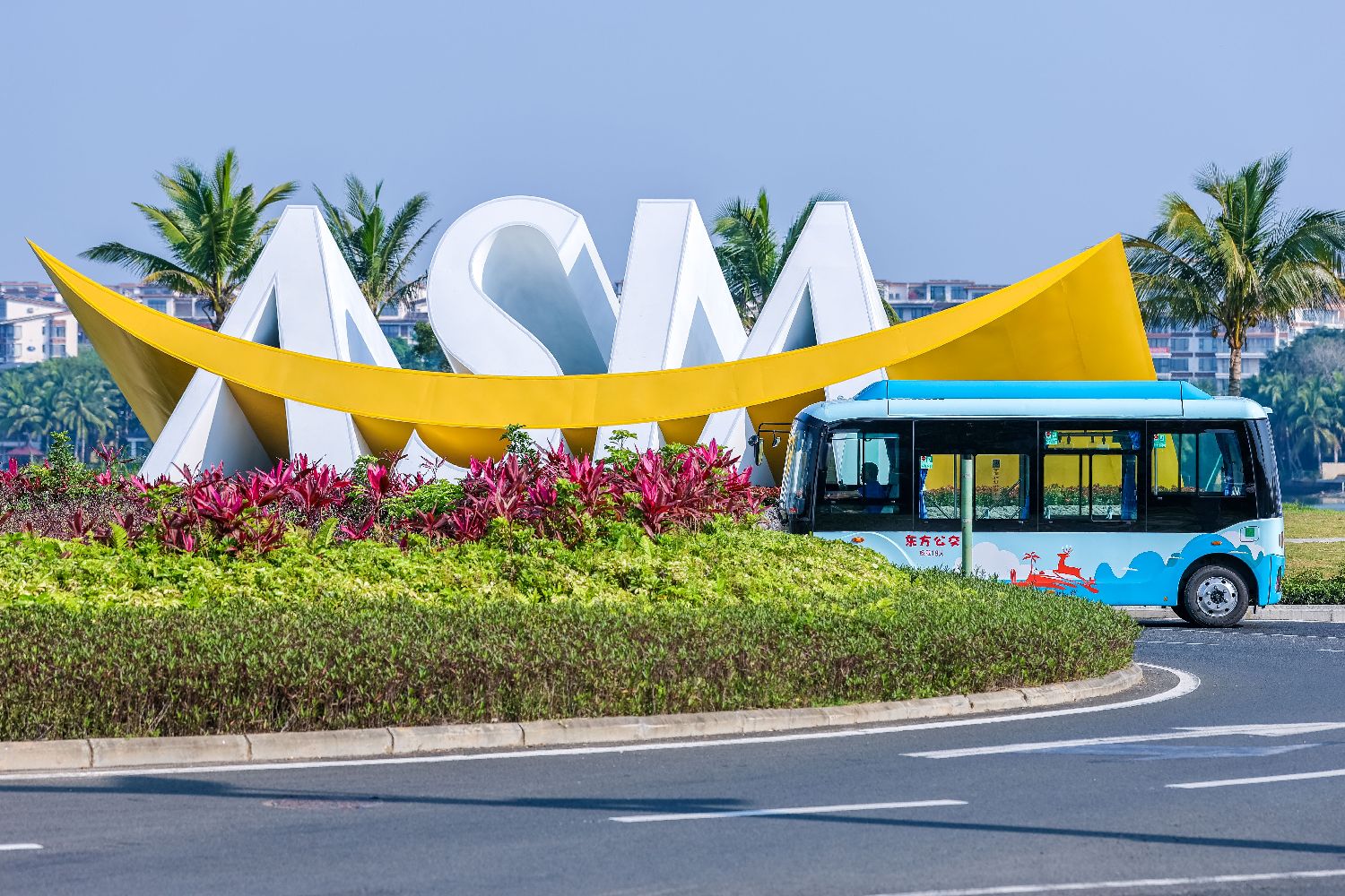 3月24日,一辆新能源穿梭巴士从“ASIA"标识前经过。博鳌亚洲论坛2025年年会将于3月25日至28日在海南博鳌举行。目前,论坛年会各项工作已准备就绪。(图/中新社)
