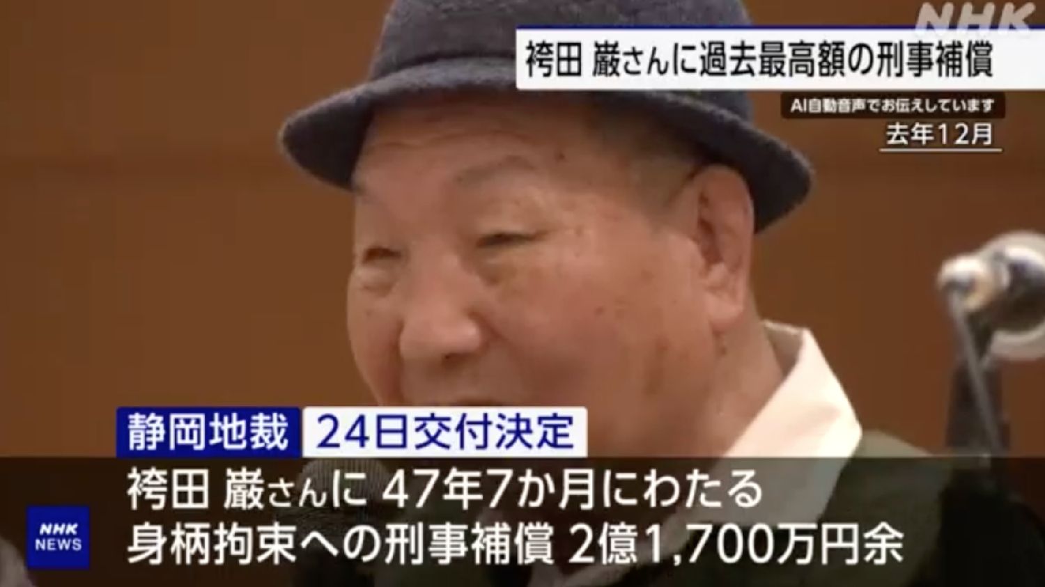 蒙冤入狱超47年!日媒:“全球服刑时间最长死囚”获赔2.17亿日元,创下日本纪录