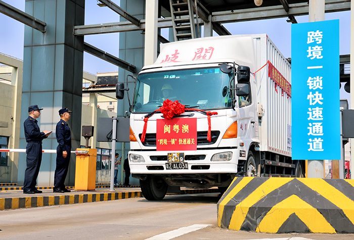 据悉,在“跨境一锁”快速通关模式下,福建、广东、香港、澳门四地深度合作,通过应用卫星定位装置、安全智能锁等物联网设备对运输车辆实施全流程实时监控,进出场所卡口时自动判断运抵、验核放行。