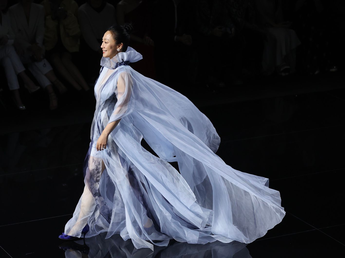 3月26日,在2025中国国际时装周(春季)上,模特展示时装作品。当日,设计师吴依诺携时装品牌代夏在北京亮相。(中新社)