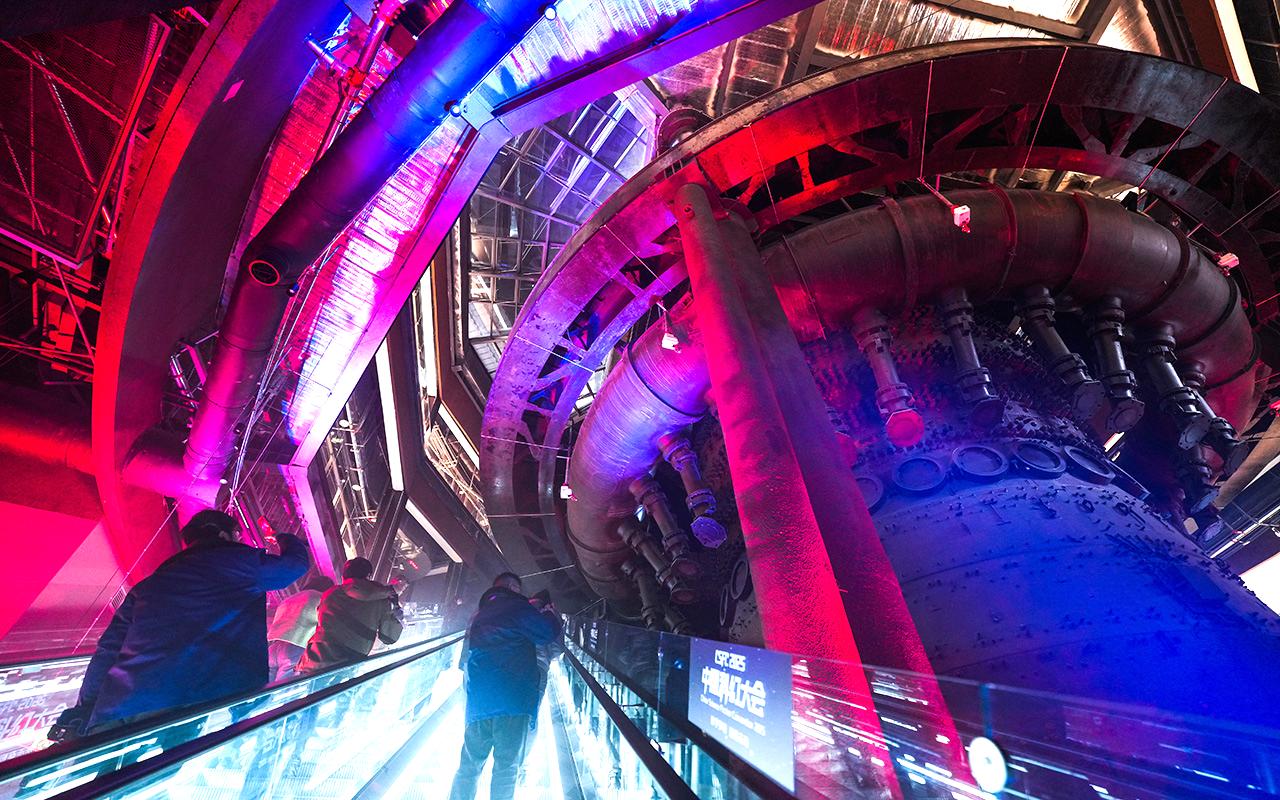 作为2025中关村论坛年会平行论坛之一,2025中国科幻大会于3月28日在北京石景山区首钢园举办,活动持续至本月31日,这也是中国科幻大会连续第五次落地首钢园。大会以“科学梦想 创造未来”为主题,设置开幕式、专业性论坛、赛事类活动、产业促进活动和群众性活动等5个板块30余场活动,同期还将举办2025北京科幻嘉年华。图为3月27日,2025中国科幻大会会场。(中新社)