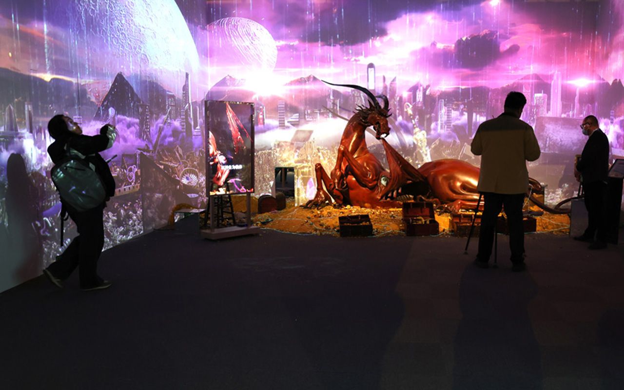 图为3月27日,北京石景山,《春回山海》科幻艺术展。(中国日报网)
