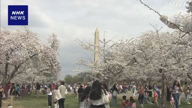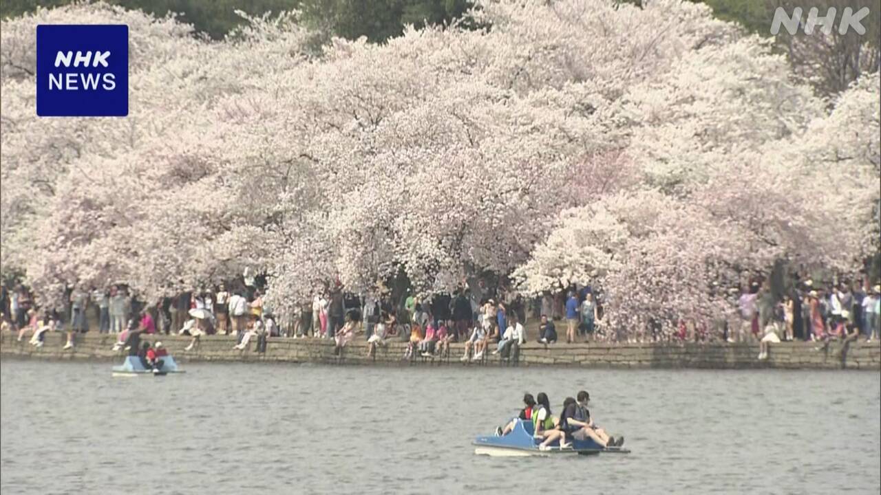 位于华盛顿波托马克河沿岸的公园,自1912年由当时东京市长赠送樱花树以来,已成为全美著名的赏樱胜地,也是象征日美友好的标志之一。管理着约3800棵樱花树的国家公园管理局在28日宣布樱花已全面盛开,河畔一带染上一片淡粉色。由于盛开正好赶上周末,29日吸引了大量游客前来,他们在樱花树下拍照、绘画,尽情享受春天的气息。一位来自俄亥俄州、首次来访的女性表示:“这里如同电影中的一幕。天气也很好,我非常享受。我希望美日之间的纽带和彼此接纳的关系能够持续下去。”