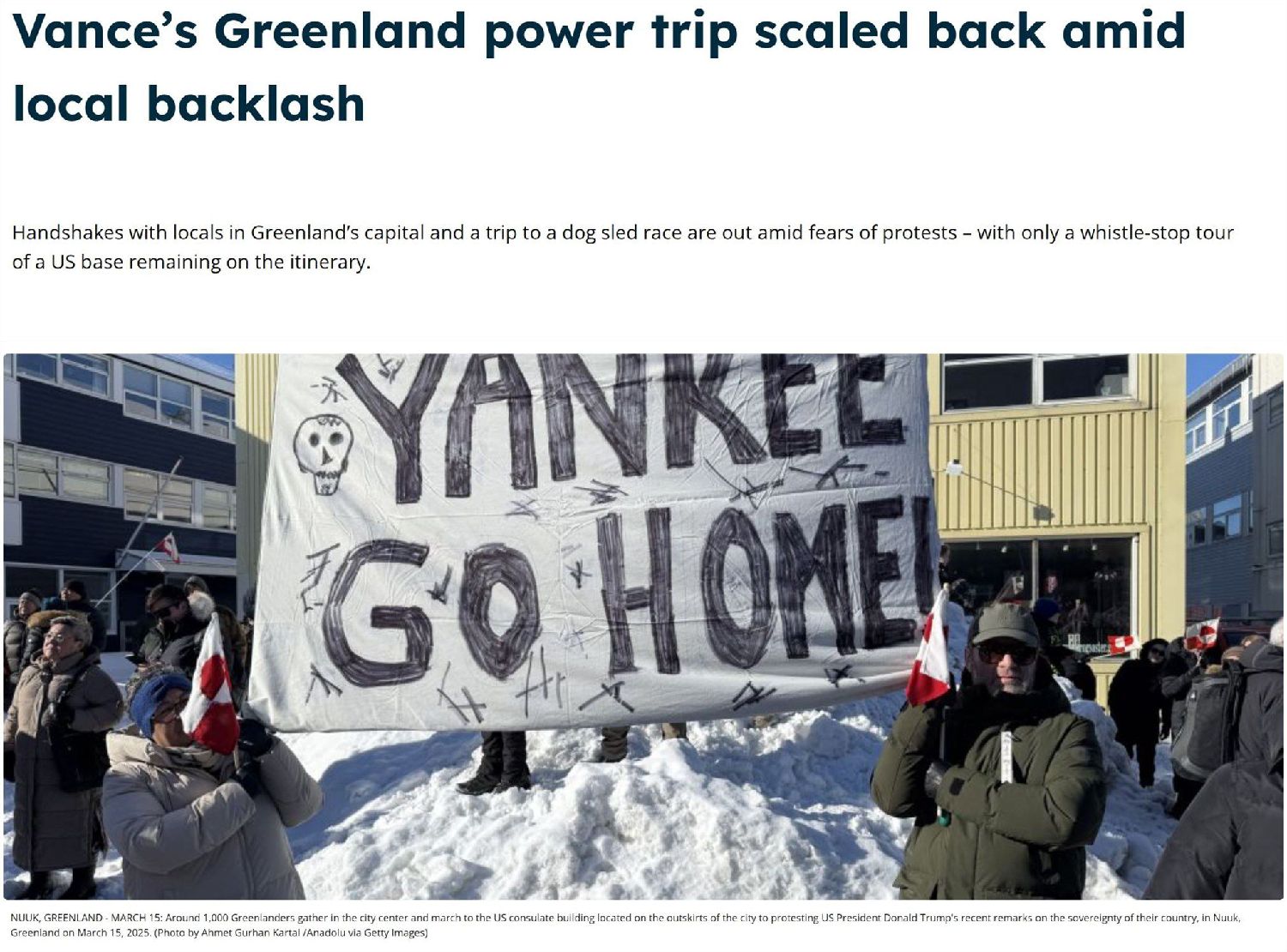 迫于舆论压力,万斯的夫人乌莎·万斯此行不得不取消了去格陵兰岛首府努克和第二大城市锡西米尤特参加相关文化活动的计划。