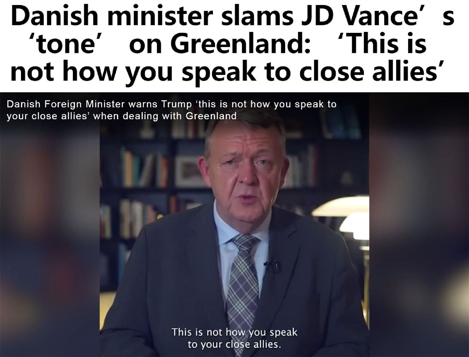 “美国方面这些天对丹麦有很多指责,我们愿意接受批评,但坦率地说,我们不欣赏美方说话的这种口气,这不是一种与亲密盟友对话的方式。”