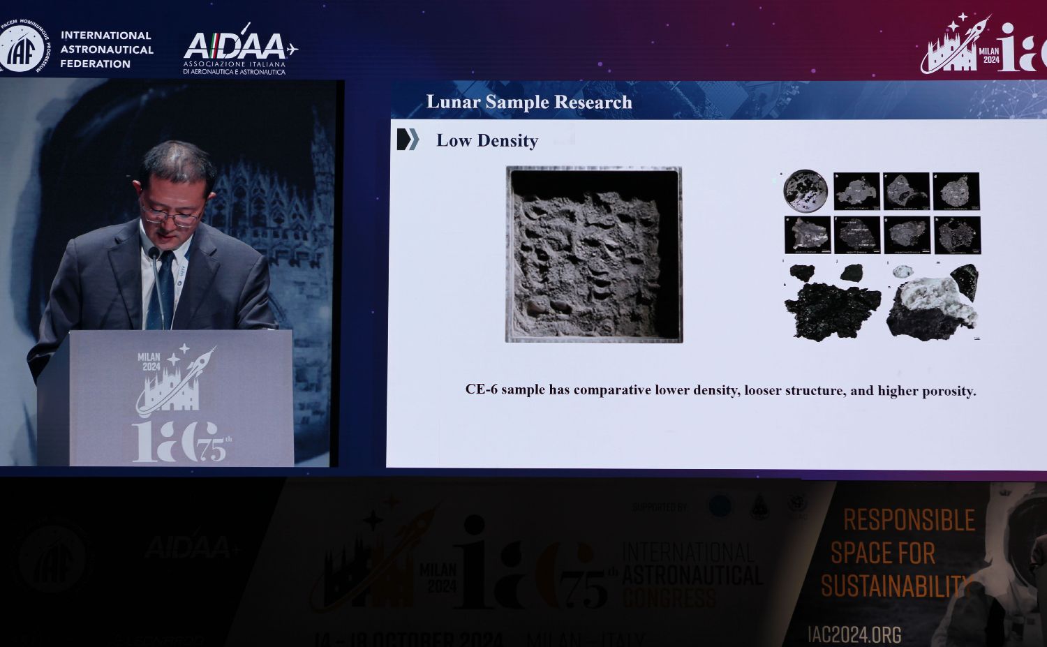 当地时间2024年10月14日至18日,第75届国际宇航大会在意大利米兰召开,嫦娥六号从月球背面采样返回的月壤样品在大会亮相,首次向全球展出。(图/中新社)