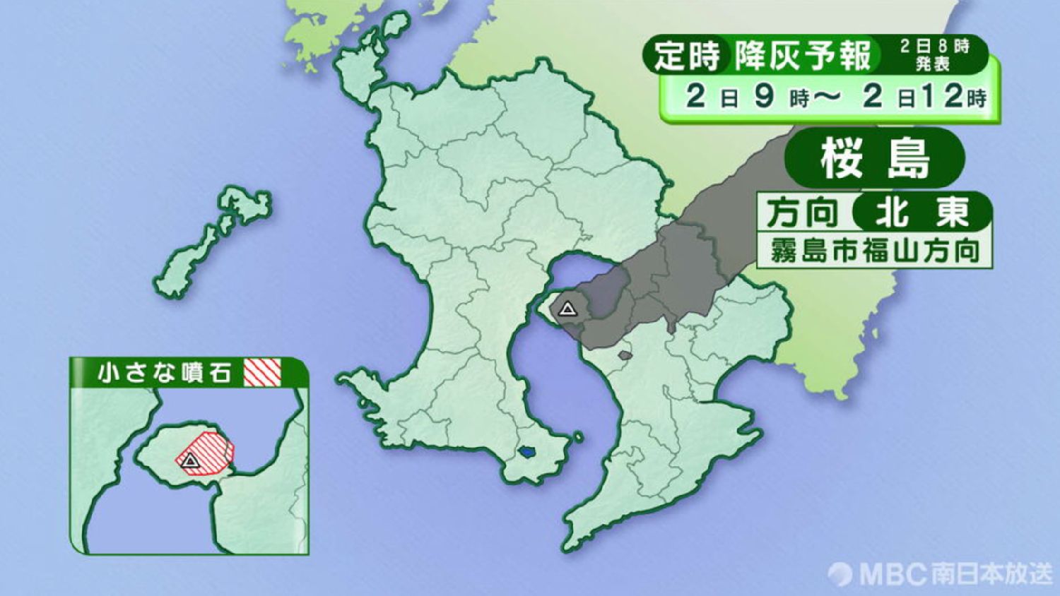 (亚太快讯)日本鹿儿岛的樱岛火山于4月2日上午7时3分在南岳山顶火口发生爆炸性喷发,喷发产生的中等规模火山烟柱高达1800米。此次喷发还伴随大量火山碎石,其中较大的喷石飞散至距离火口600至900米的七合目区域,火山灰向东北方向飘散。