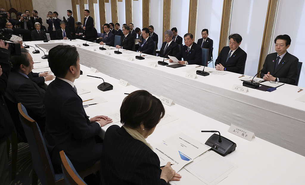 8日,日本政府举行由全体阁僚组成的综合对策总部首次会议。(视觉中国)