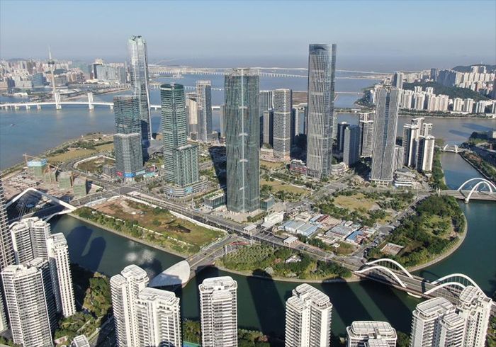 图为2024年11月26日拍摄的横琴金融岛(无人机照片)。(图/新华社)