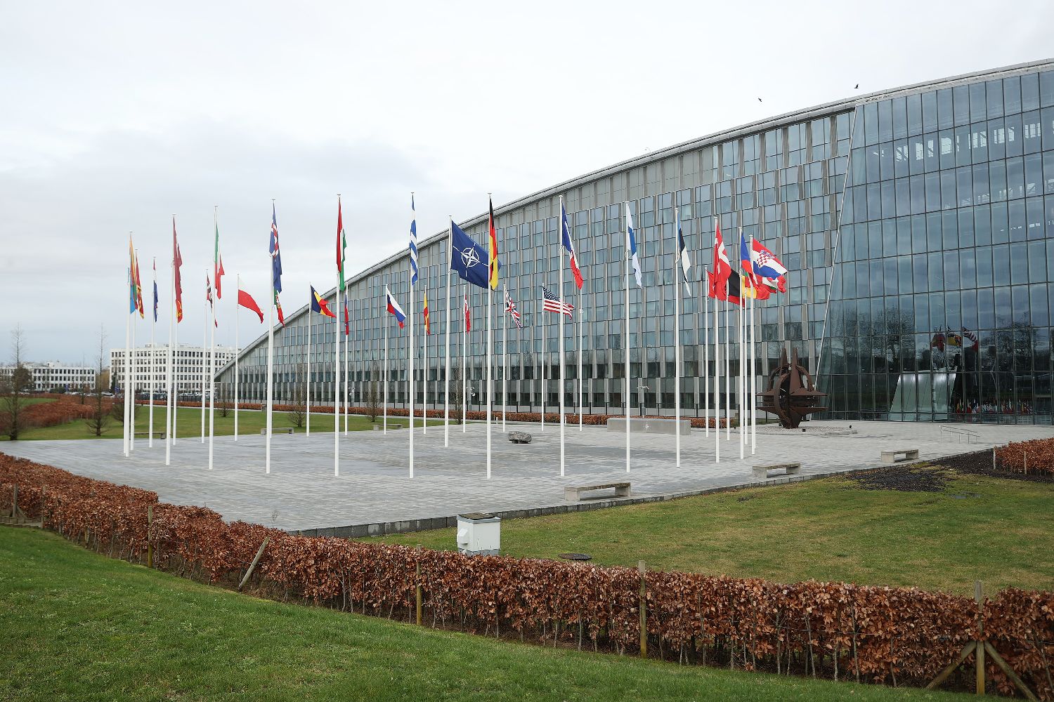 图为在比利时布鲁塞尔拍摄的北约总部一角。(图/新华社)