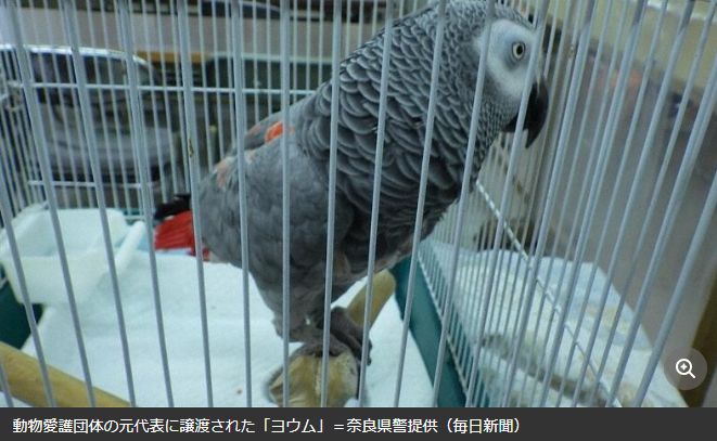 图为被移交动物保护组织的“非洲灰鹦鹉”。(图/《每日新闻》报道截图)