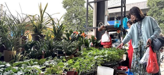 4月11日,顾客在西安朱雀花卉市场选购菜苗。(图/中新网)