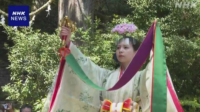 日本和歌山世界遗产熊野那智大社举行“樱花祭” 祈愿五谷丰登