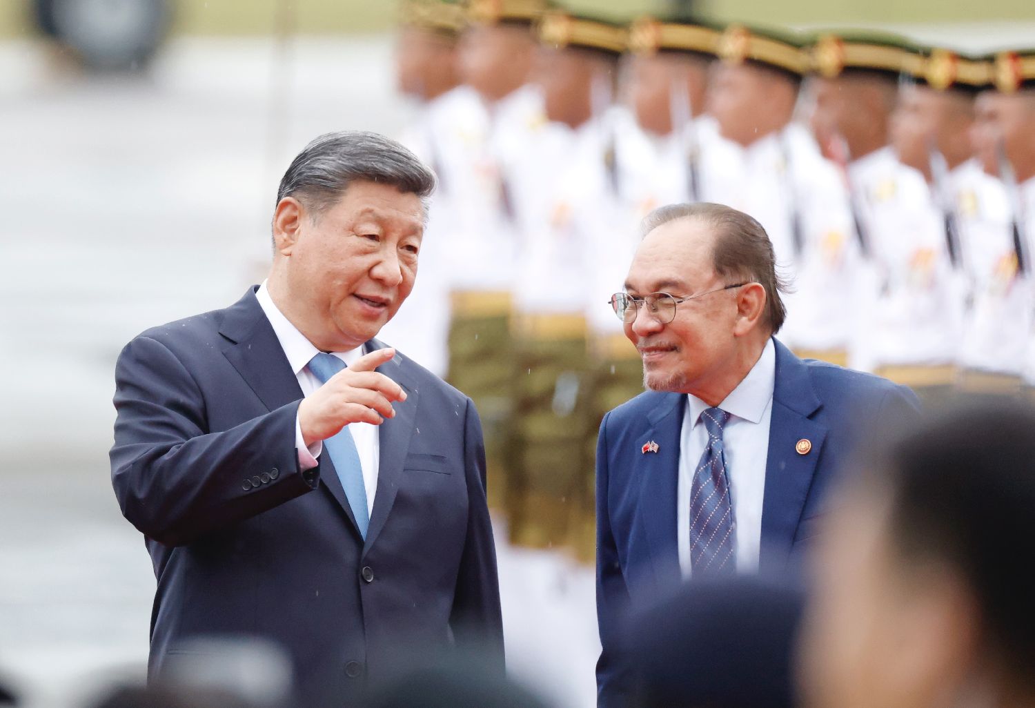专机抵达吉隆坡国际机场时,马来西亚总理安瓦尔,外交部部长穆罕默德,陪同部长、交通部部长陆兆福等高级官员热情迎接。马来西亚儿童向习近平献花,马来西亚青少年表演富有当地特色的舞蹈,挥舞中马两国国旗,热烈欢迎习近平到访。