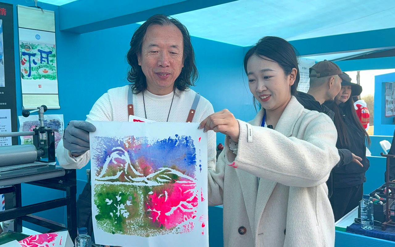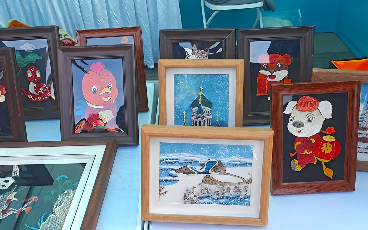 图为4月16日,非遗传承人展示冰雪画。(北京央广网)