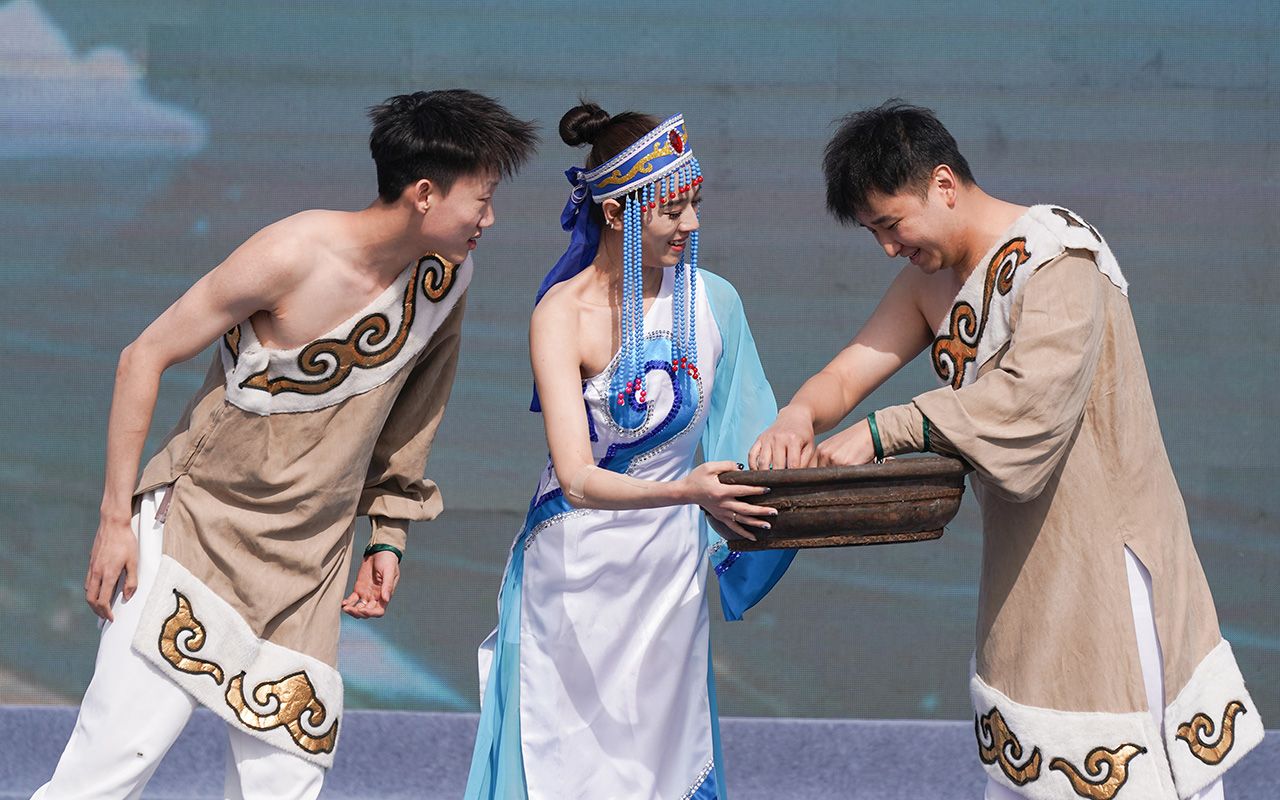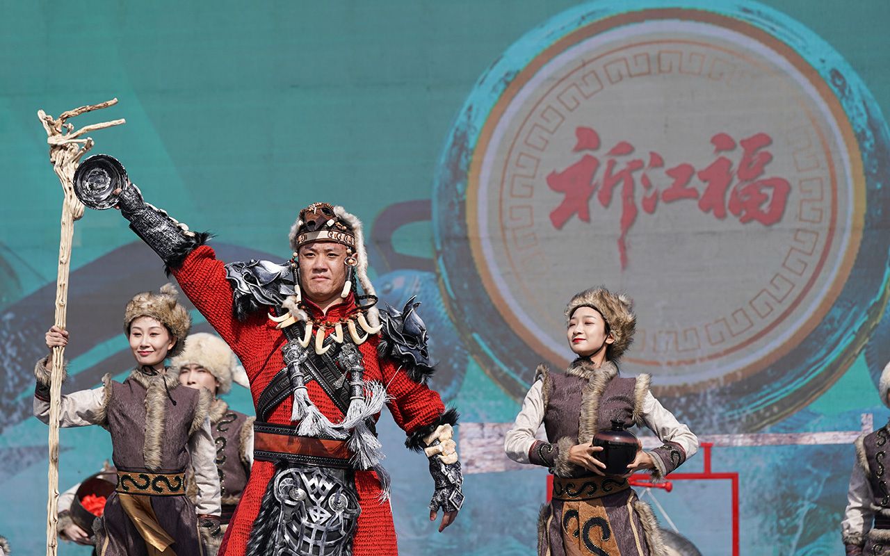 图为4月16日,演职人员在2025哈尔滨市开江民俗文化周启动仪式现场表演。(哈尔滨新闻网)