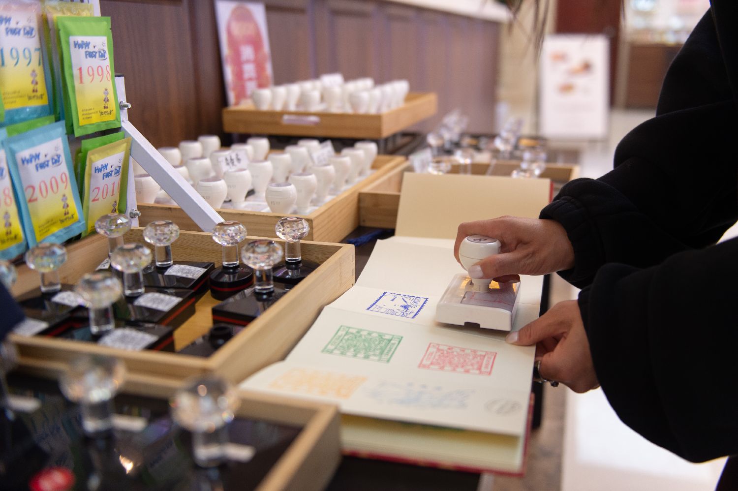 除了品咖啡、住民宿,人们还能收集特色纪念戳,选购信封、明信片、冰箱贴、文具等各种文创商品,进一步加深对大龙邮局和烟台历史文化的了解与感受。