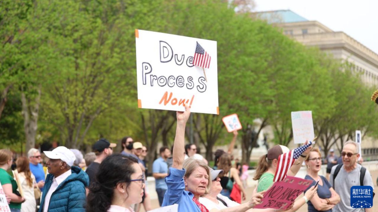 在华盛顿的白宫门口,抗议人群手持“停止非法驱逐”“工人而非富人拥有权力”“宪法危机已经到来”等各色标语牌表达不满。在华盛顿一家非营利组织工作的弗兰克说,现任政府在没有进行任何审理的情况下,取消学生签证、驱逐移民,把他们赶出美国,这违反正当法律程序。