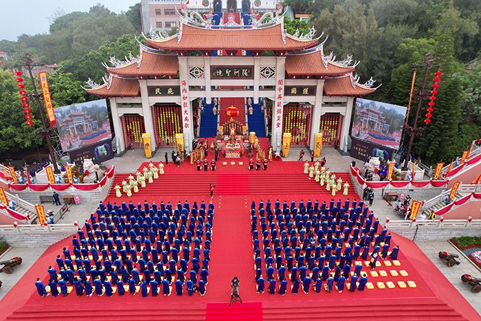 4月20日,纪念妈祖诞辰1065周年大会暨春祭妈祖大典在福建莆田湄洲妈祖祖庙天后广场隆重举行。(图/中新社)