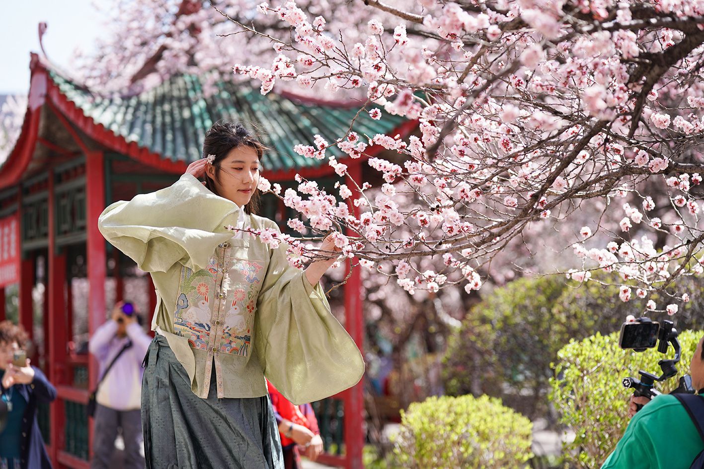 眼下,位于长春市伊通河畔的梅花大道上,单红公主梅迎来最佳观赏期。粉红色的花朵缀满枝头,近看繁花似锦,远望如丝带,汇成了一条绵延数里的花海长廊,吸引着市民游客共赴浪漫的“赏花盛宴”。(人民网)