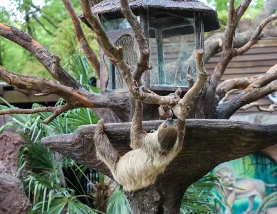 为迎接新“居民”二趾树懒的到来,上海野生动物园在小动物乐园为它们新建了一处原生态的家园,这里不仅布置了丰富的热带植物,设计师们还将仿真藤蔓贯穿于树林间并添置了树屋供它们栖息。园方表示,这样的设计希望满足树懒栖居树上,爱用爪钩住树枝倒挂身躯,并在树上移行的特性。