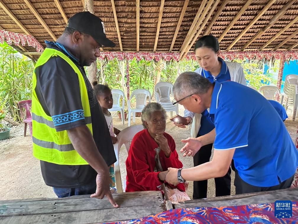 4月25日,在瓦努阿图桑托岛的一处社区,第三批援瓦努阿图中国医疗队队员为当地居民做检查。新华社发(第三批援瓦努阿图中国医疗队供图)