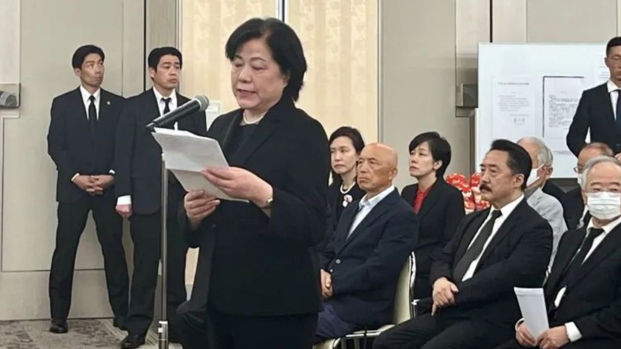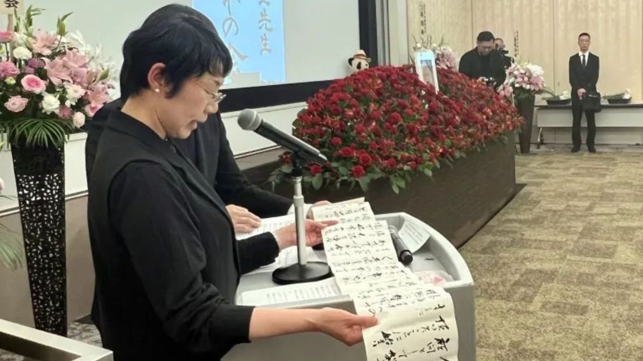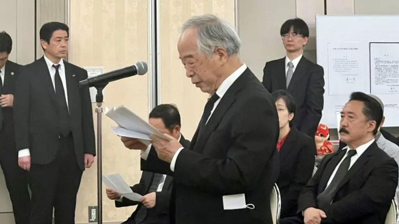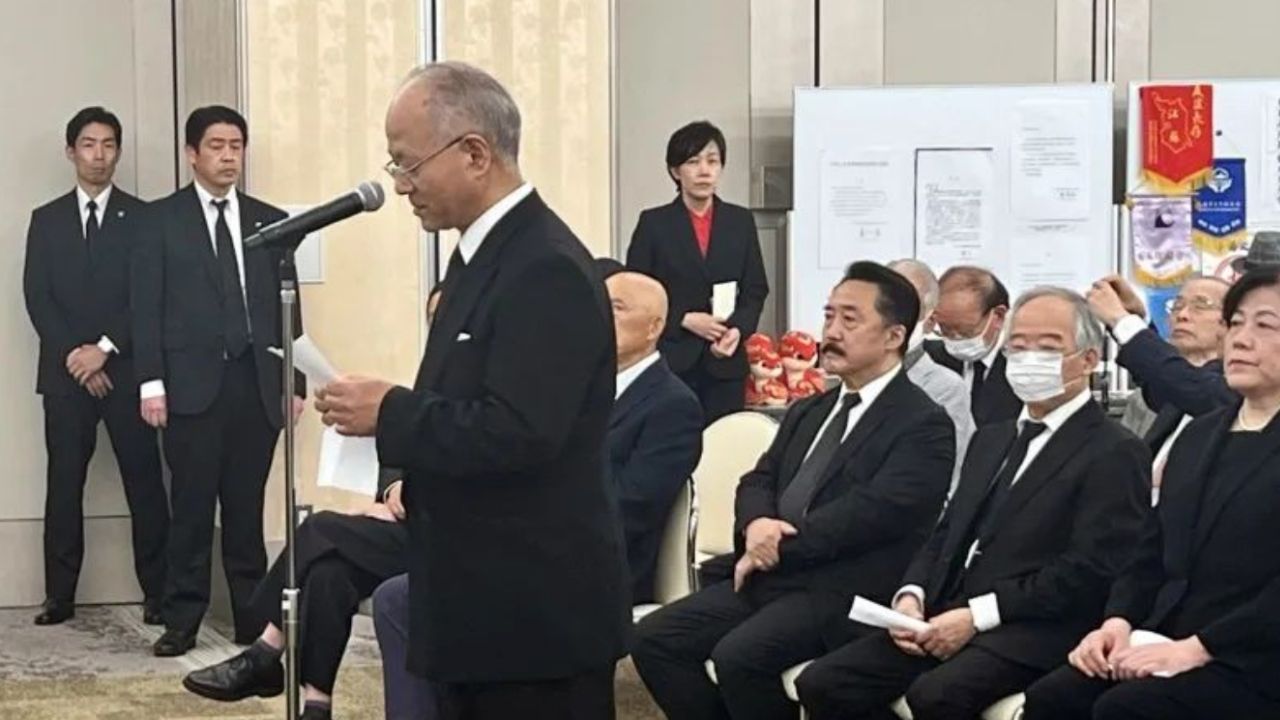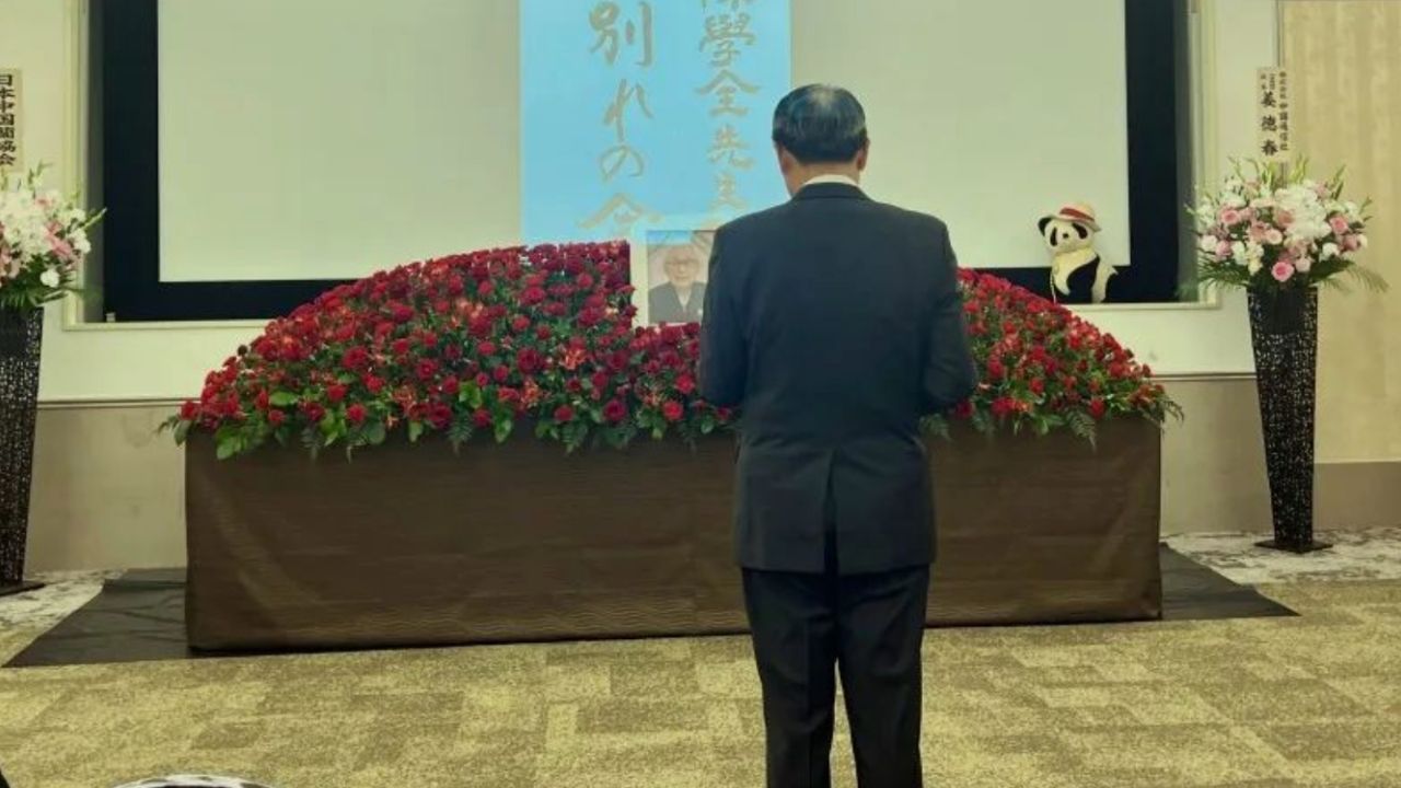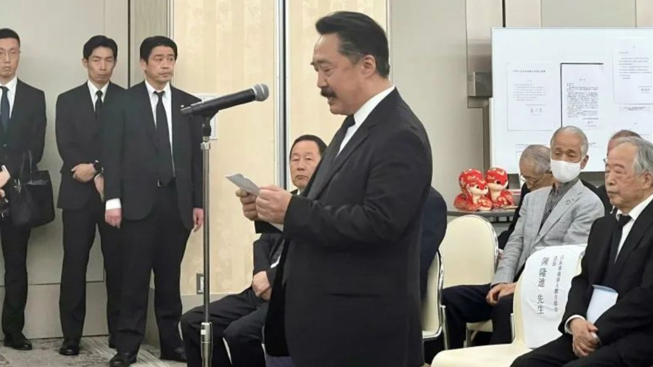 日本华侨华人联合总会陈隆进会长致辞表达哀悼。他表示自己从事侨界工作,从陈学全前辈那里学习了很多。今年2月6日,陈隆进去医院看望陈学全前辈,见了最后一面。2月7日,收到了陈先生的讣告。5月15日,应该是学全前辈的93岁诞辰。今天是5月10日,我们在这里举办告别式,相距前辈离开我们刚好93天。这些也是冥冥中的天意吧。学全前辈一生喜爱熊猫,他的标志色是红色。红帽子、红口罩、红围巾、红夹克,我曾戏称他是移动的红色邮筒。红色也是中国与日本的标志性颜色,红色也成为陈学全先生连接中日的一生的信念的颜色。感谢您,陈学全先生,长年的勤务工作,辛苦了。请您安息吧。