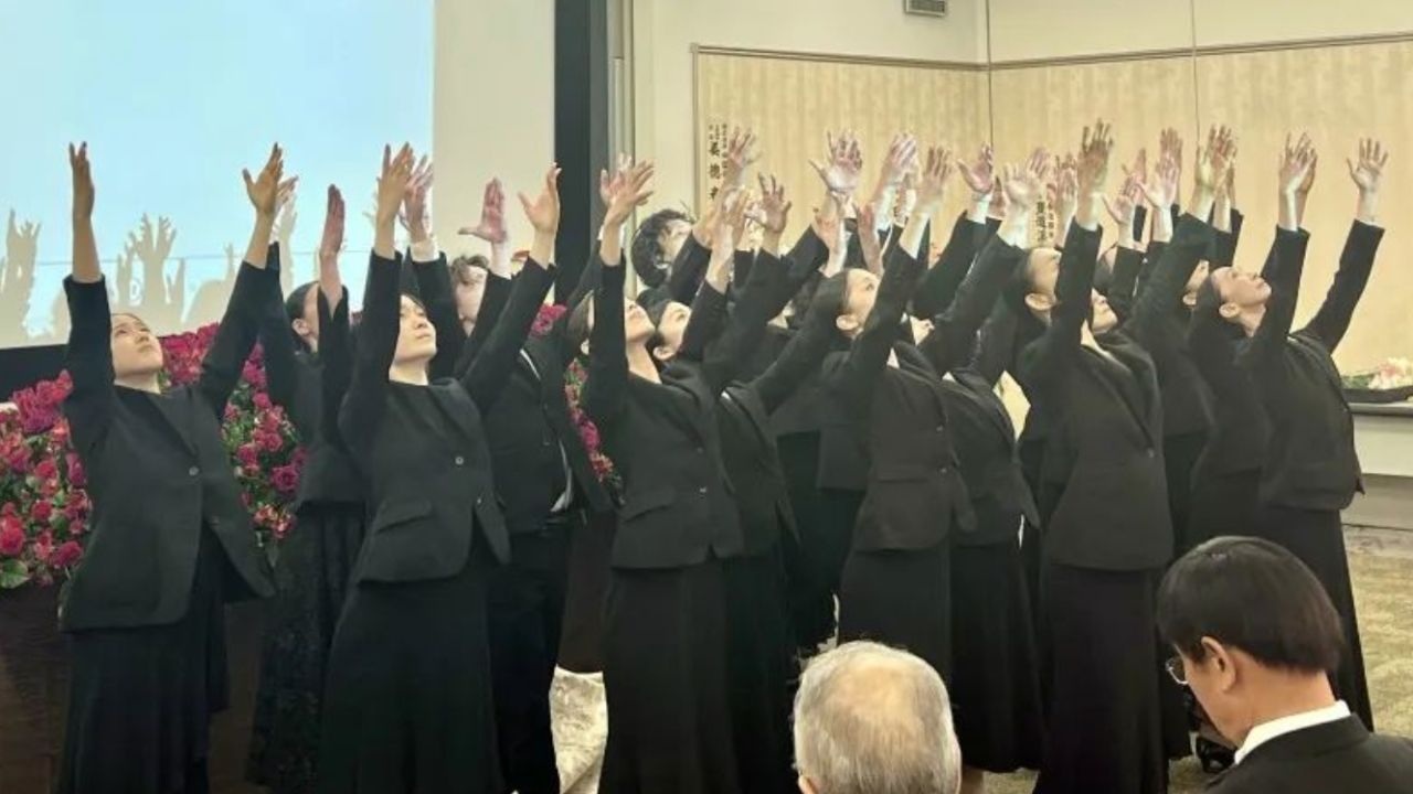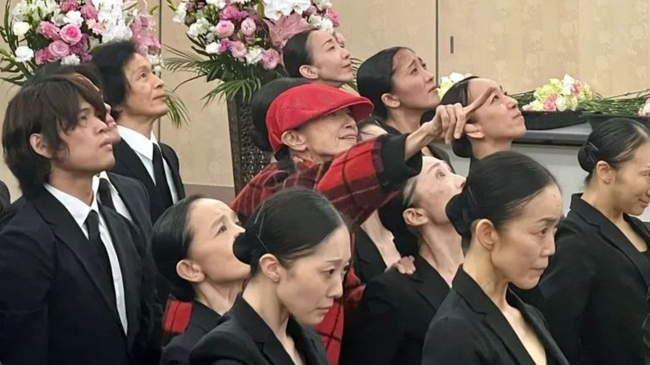 随后,日本松山芭蕾舞团奉献了悼词和纪念舞蹈。她们用崇敬而激情的悼词,用肃穆而震撼的舞蹈,重现了陈学全崇尚的时代精神,以此为“陈学全爸爸”送别。表演时,森下洋子穿戴的红色帽子和上衣,是陈学全的衣裳遗物,向故人表达敬意。