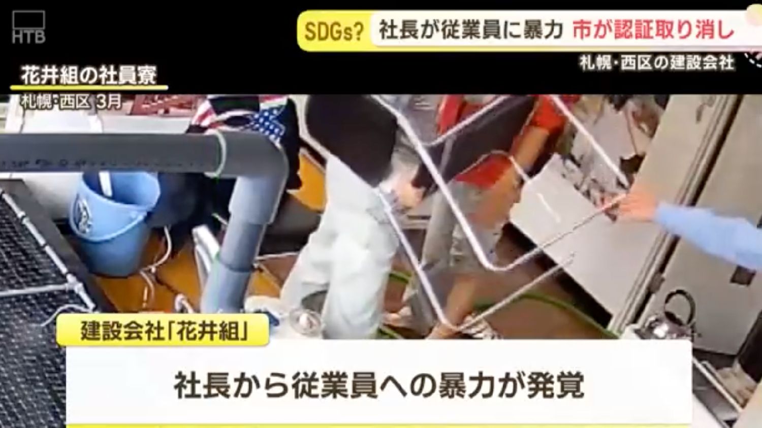 (亚太快讯消息)据HTB北海道新闻报道,日本札幌市政府12日宣布,取消当地建筑公司“花井组”持有的五项企业认证资质,包括“SDGs(可持续发展目标)推进企业”和“微笑企业”等称号。此前该公司社长被曝长期在员工宿舍实施暴力行为,监控录像显示其多次殴打员工。
