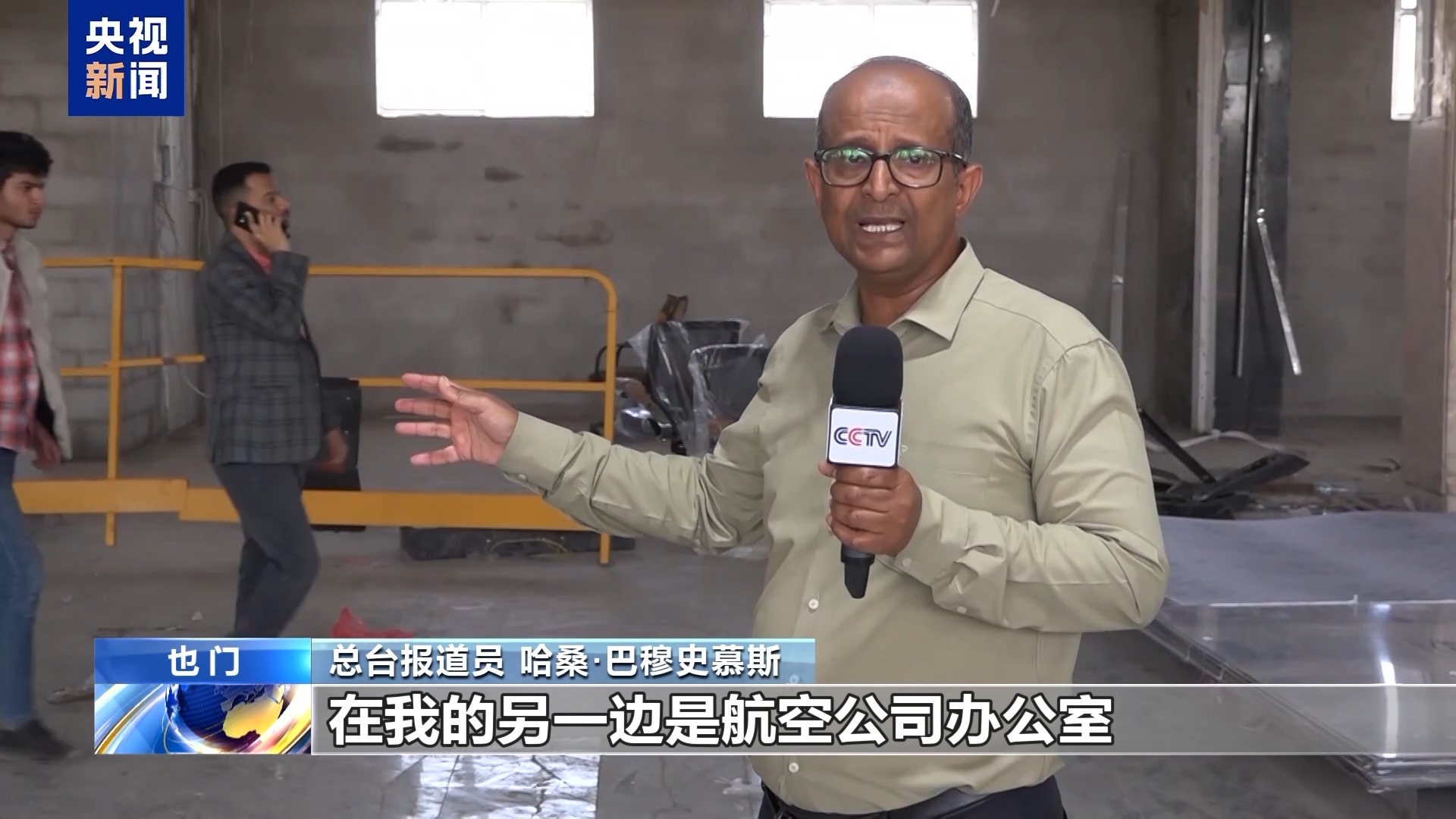 总台报道员哈桑·巴穆史慕斯:我们现在在萨那国际机场,现在我们看到所有的修复工作都在紧张进行中。机场跑道的修复工作已经完成,可供各型号飞机起降。在我的另一边是航空公司办公室和移民局的办公室,工作还在继续,也接近尾声了。萨那国际机场负责人告诉我们,一切修复工作还在紧张进行中,机场将在未来几天重新运营并为旅客服务。