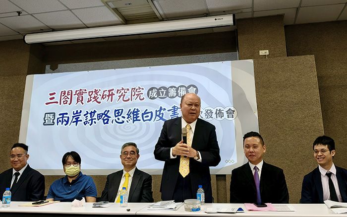 5月25日,由新党推动的“三阁实践研究院”成立筹备会暨《两岸谋略思维白皮书》首次发布会在台北举行。(图/中新社)