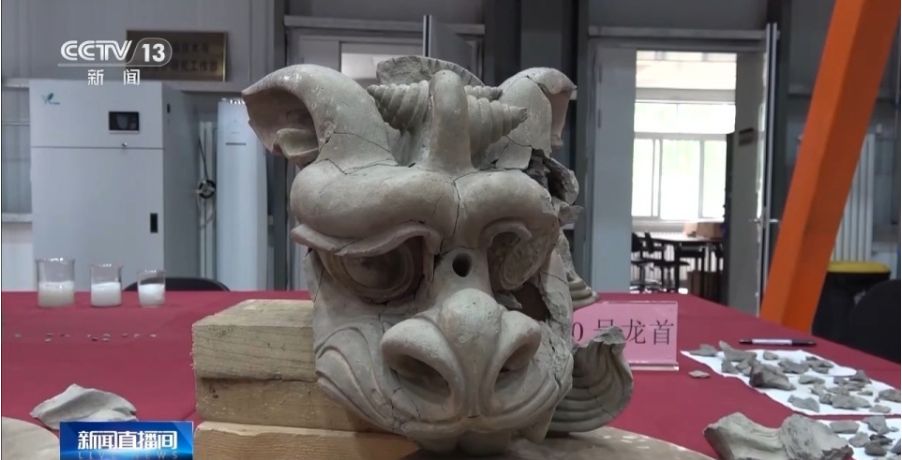 雄安古州城遗址出土的两件唐代彩绘陶质龙首,于日前修复完成,显露出全新的龙形象,中国龙再添“新成员”。(图/中国央视新闻视频截图)