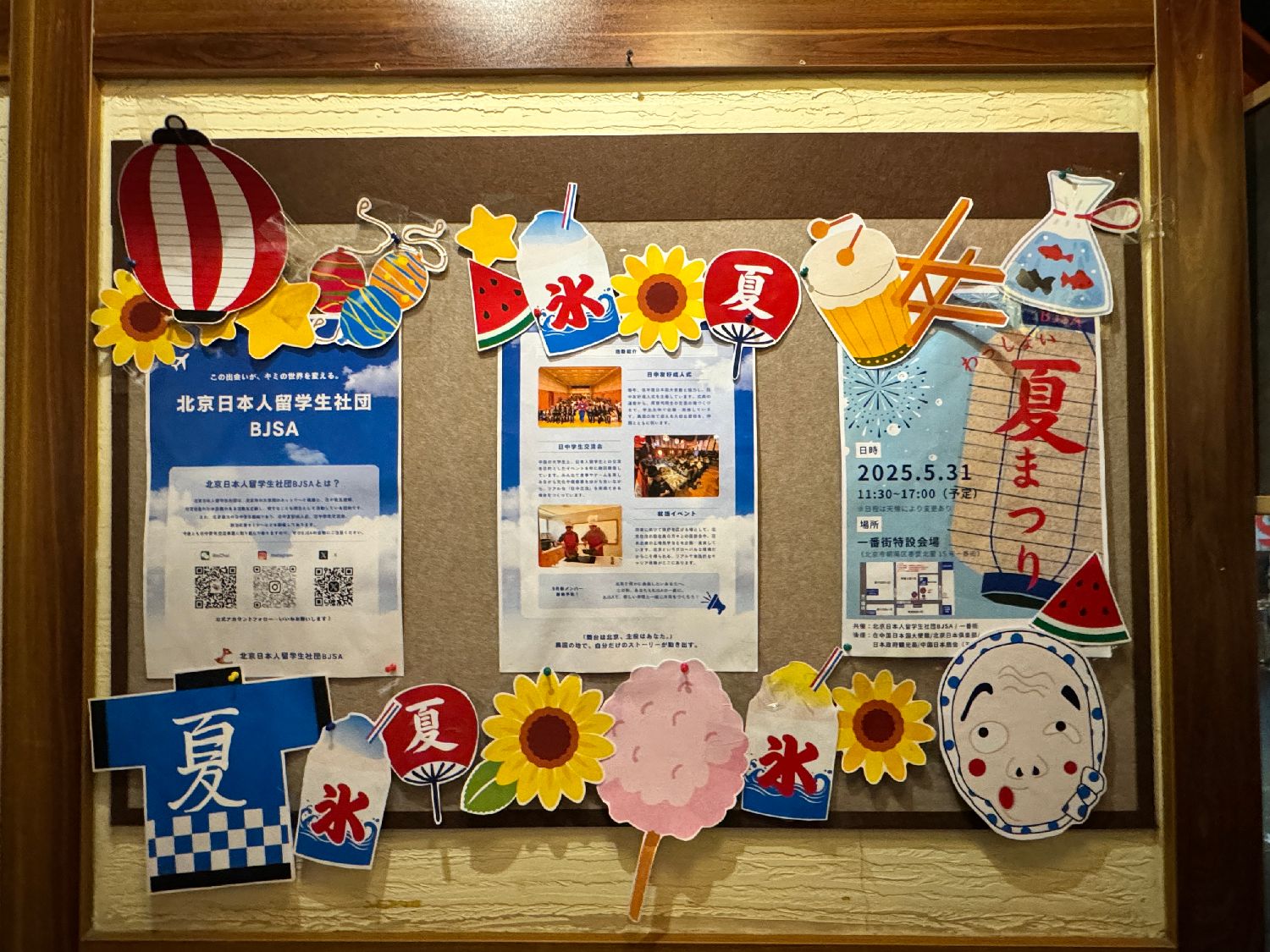 图为活动宣传板,贴满了日本夏日祭元素的贴纸。(凉子/摄)