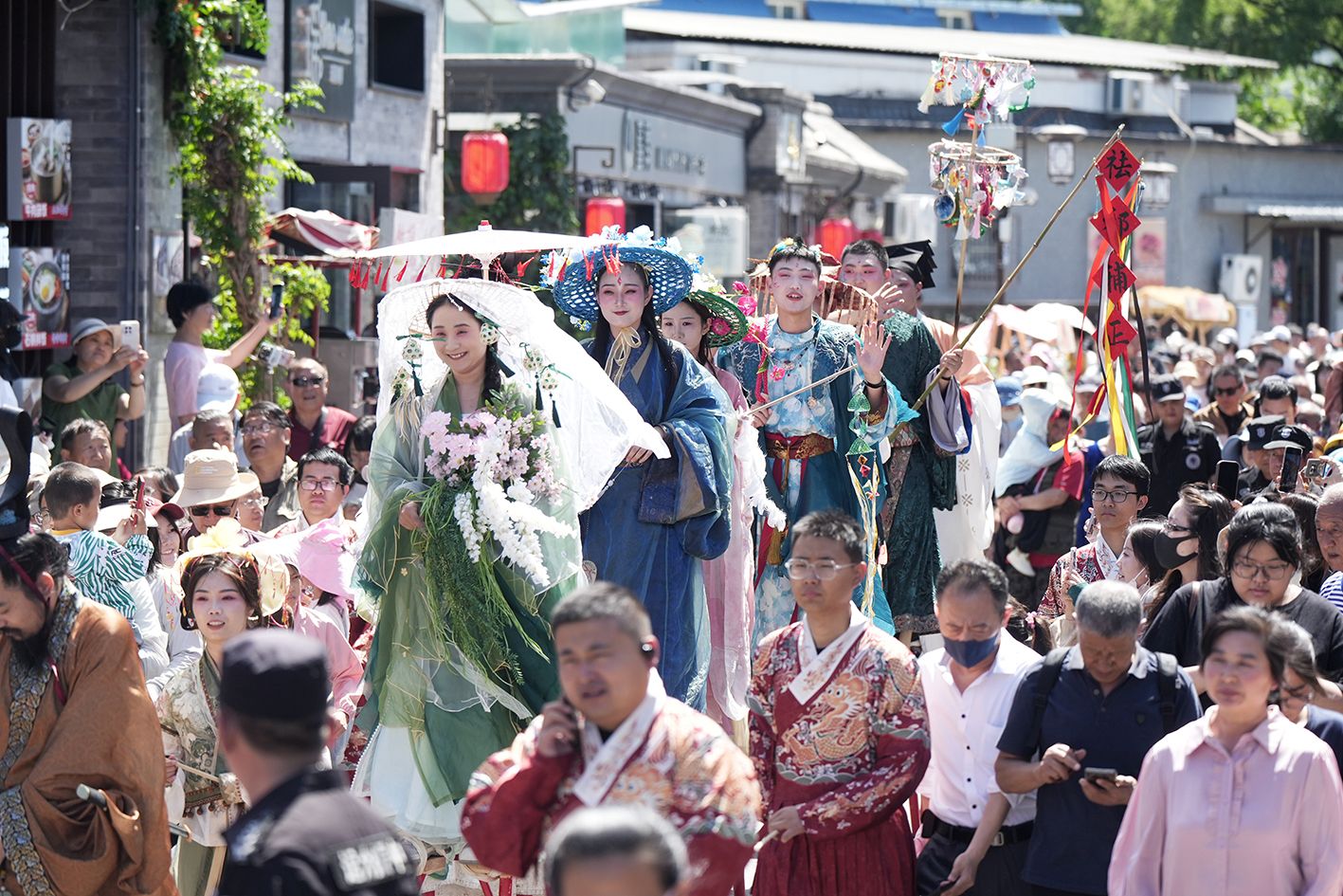 6月2日,在北京模式口历史文化街区,高跷巡游吸引观众。据悉,北京模式口历史文化街区以“华彩模式”为主题,在端午假期推出国潮文化节特别活动。活动通过高跷巡游、非遗百戏、沉浸互动、集章打卡等多元形式,打造一场传统节庆与现代潮流深度融合的文化盛宴。(中新社)