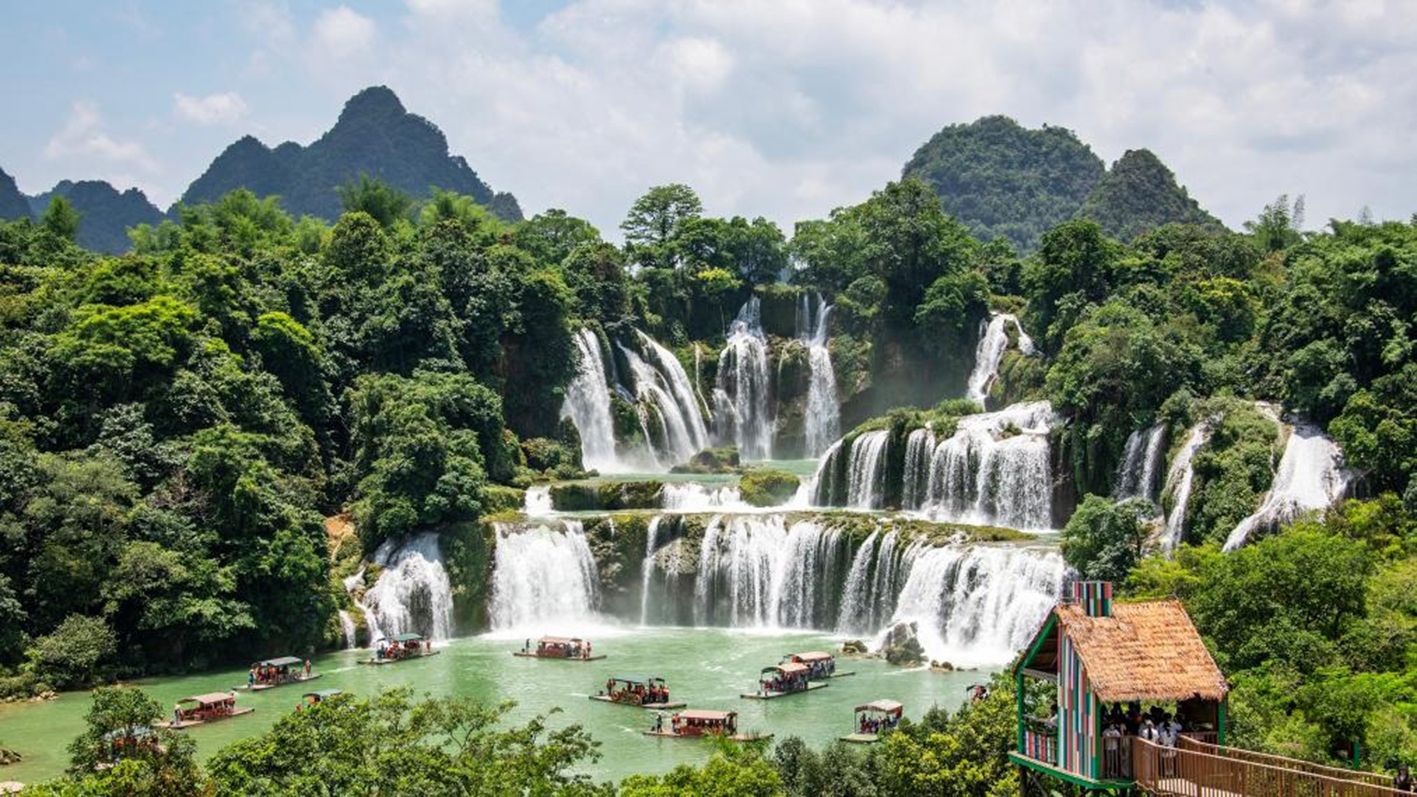 6月1日,游客在广西崇左市大新县德天瀑布景区游览。(新华社)