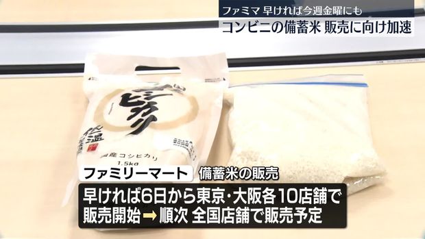 通过随意契约采购的储备米,预计本周内也将在日本的大型便利店开始销售