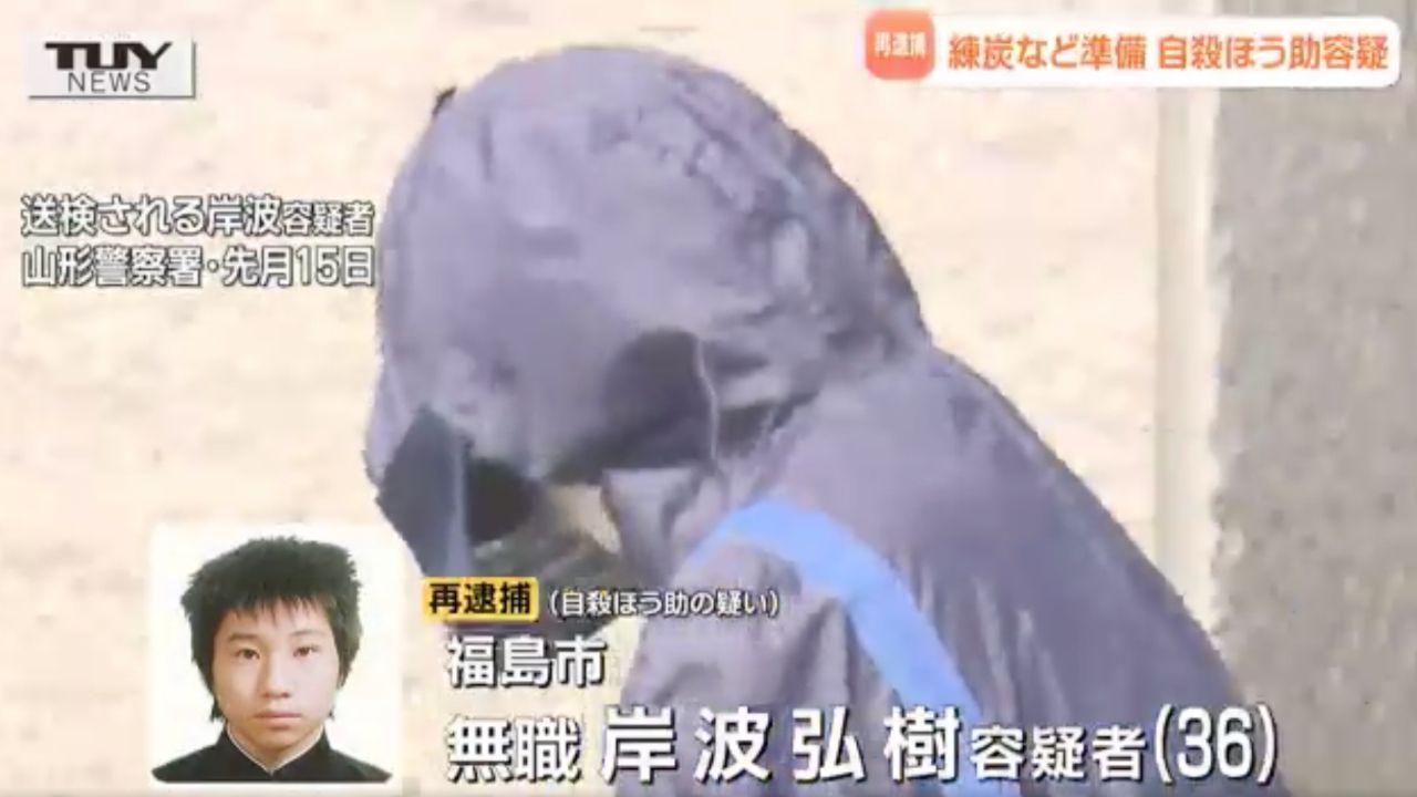 据警方调查,岸波涉嫌在山形县上山市协助一名十几岁的少女自杀。他此前已因涉嫌诱拐该少女于上月被捕,进一步调查后发现,其还准备了少女用于自杀的工具,包括帐篷和炭火。