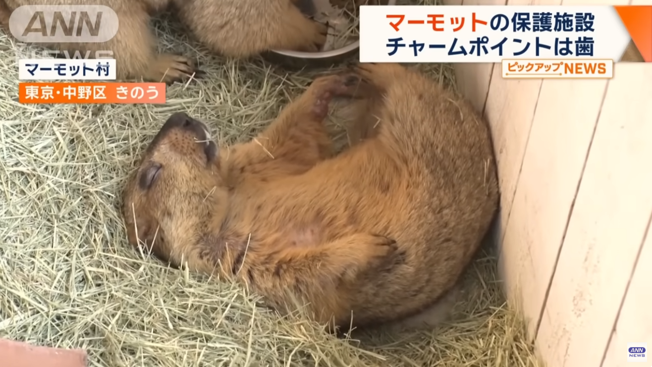 土拨鼠睡着的样子。(图/朝日电视台报道截图)