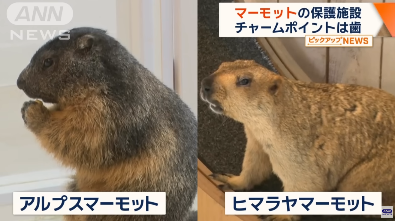 左为阿尔卑斯旱獭,右为喜马拉雅旱獭。(图/朝日电视台报道截图)