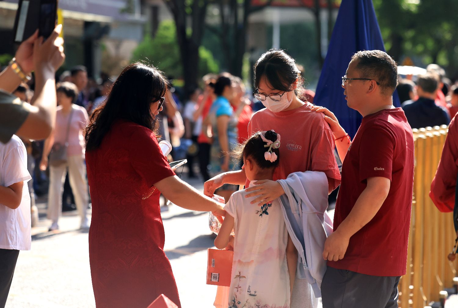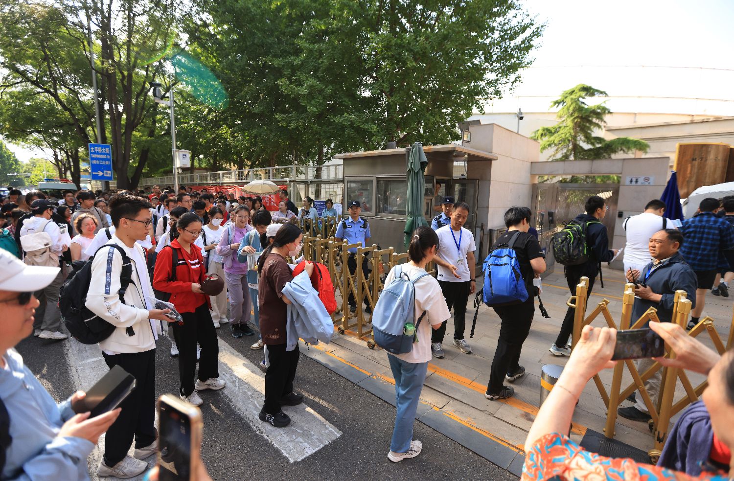 2025年6月7日,家长与考生在北京市第八中学考点外等候入场。卞亚文/摄