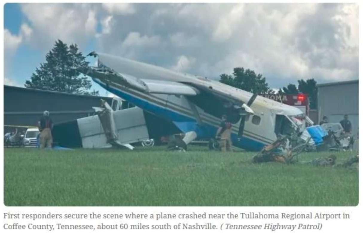 一架载有约20人飞机在美国田纳西州坠毁 多人受伤
