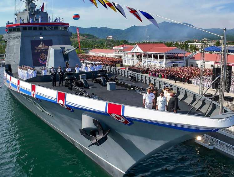 6月12日,朝鲜人民军海军驱逐舰下水典礼在罗津造船厂举行,朝鲜劳动党总书记、国务委员会委员长金正恩出席仪式。