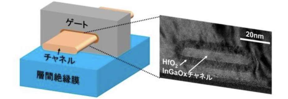 GAA型氧化物半导体晶体管示意图与透射电镜截面图 图源:EE Times Japan