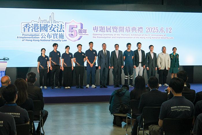 6月12日,香港国安法公布实施五周年专题展览开幕典礼在香港历史博物馆举行。(图/中新社)