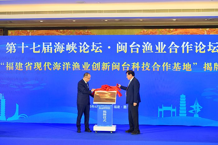16日在厦门举办的第十七届海峡论坛·闽台渔业合作论坛上,福建省现代海洋渔业创新闽台科技合作基地揭牌成立。