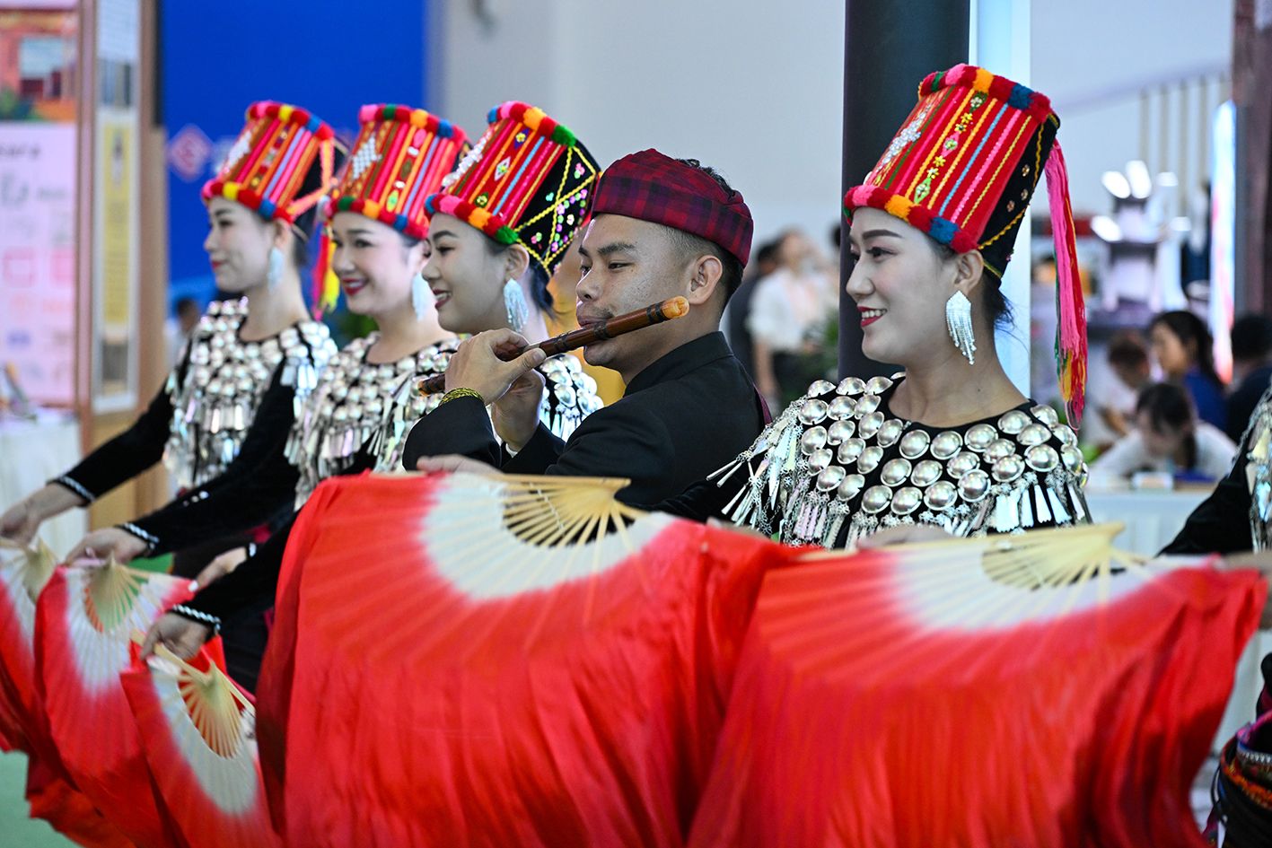 6月19日,云南景颇族歌舞表演。当日,第9届中国-南亚博览会暨第29届中国昆明进出口商品交易会在云南省昆明市开幕。(中新社)